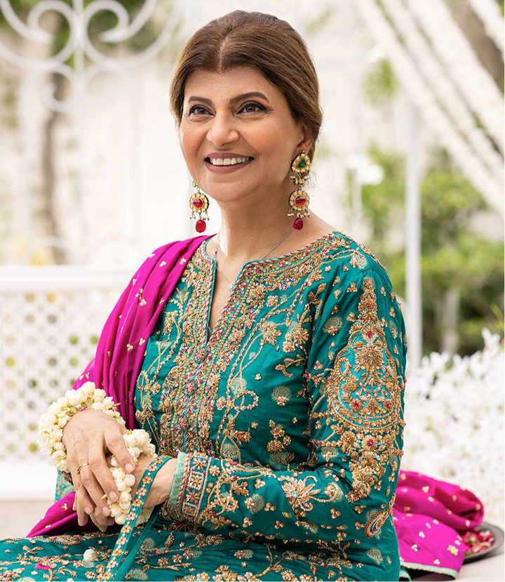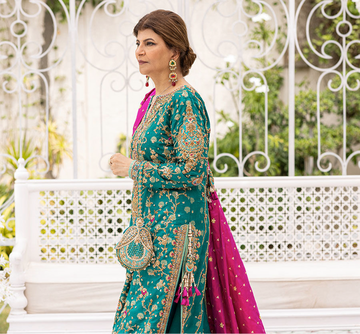 BACK ON RAW SILK FABRIC WITH WORK OF HEAVY EMBROIDERY AND HAND EMBELLISHMENT