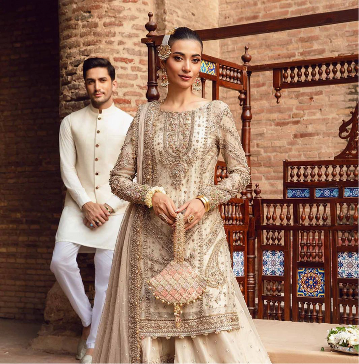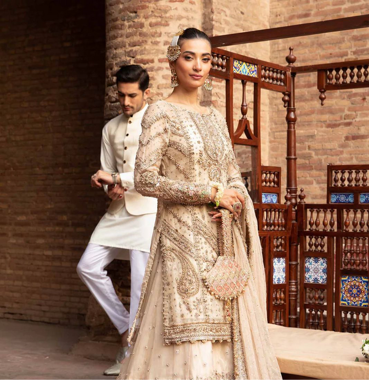 Front On Organza Fabric With Work Of Heavy Embroidery And Hand Embellished